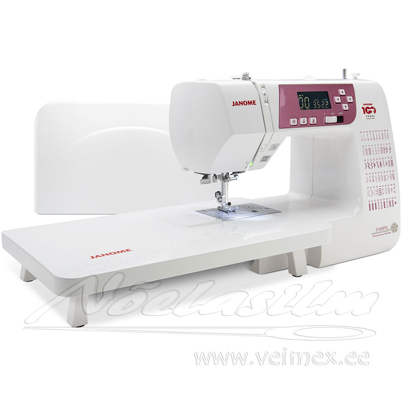 Elektromehaaniline õmblusmasin Janome 3160 PG Anniversary Edition, millega võimalik õmmelda materjale siidist kuni tugeva ja paksu kangani. See on kvaliteetse koostega õmblusmasin.